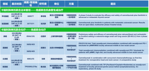 卡瑞利珠单抗联合ag真人国际官网医药的另一款创新药法米替尼在甲状腺癌和结直肠癌领域有2项研究被接收为壁报,另有卡瑞利珠单抗联合化疗的4项研究在肺癌、结直肠癌、头颈癌和阴茎癌领域的研究被接收为5份壁报。
